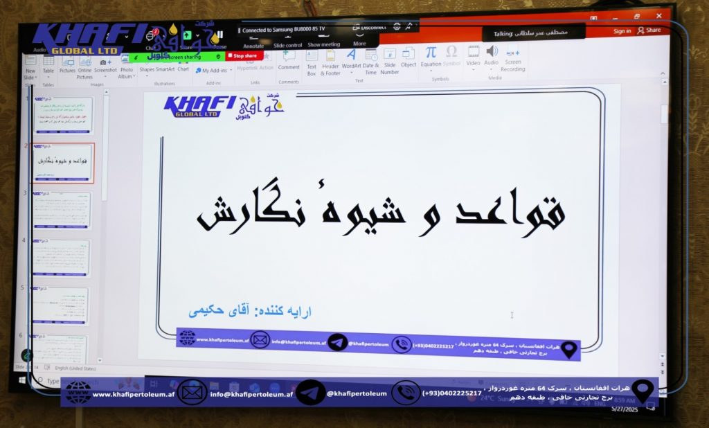 روز سه شنبه مورخ ۶ / جوزا / ۱۴۰۴، سومین دوره سمینار از سلسله سمینارهای علمی ـ آموزشی « نامه نگاری و مکتوب نویسی » با عنوان « قواعد و شیوههای نگارش »، در دفتر مرکزی خوافی گلوبل همراه با اشتراک اعضای محترم ذخایر و نماینده گی ها از طریق برنامه زوم و با تدریس استاد امید «حکیمی» برگزار گردید.