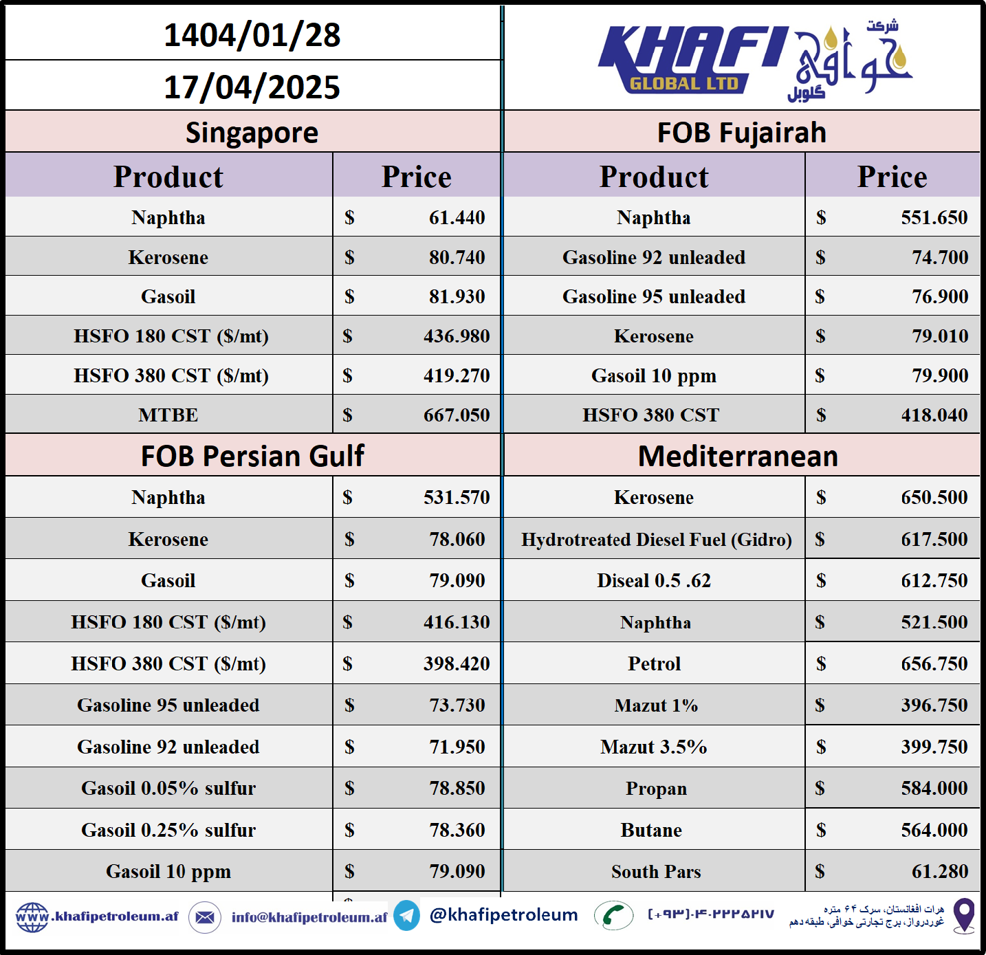 قیمت های جهانی