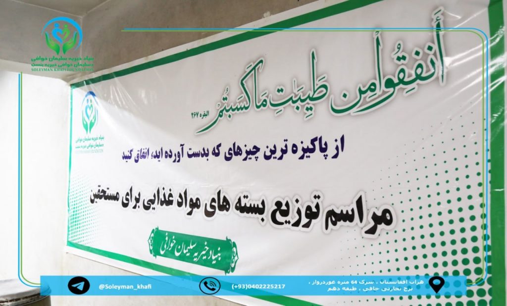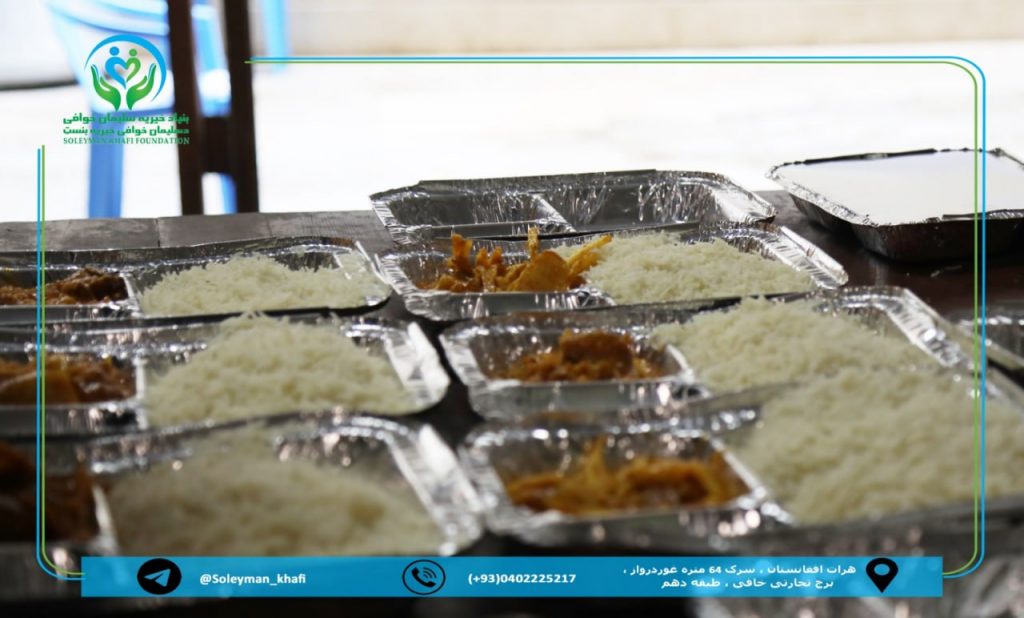 به تعقیب این راه خداپسندانه، مجموعه خوافی گلوبل و بنیاد خیریه سلیمان خوافی برنامهای ارزشمند را به منظور حمایت از اقشار نیازمند و آسیبدیده جامعه ترتیب داد. در این اقدام خیرخواهانه، تعداد ۱۱۰۰ بستهی غذای گرم با دقت، نظم مثالزدنی و برنامهریزی منسجم تهیه و میان نیازمندان توزیع گردید.